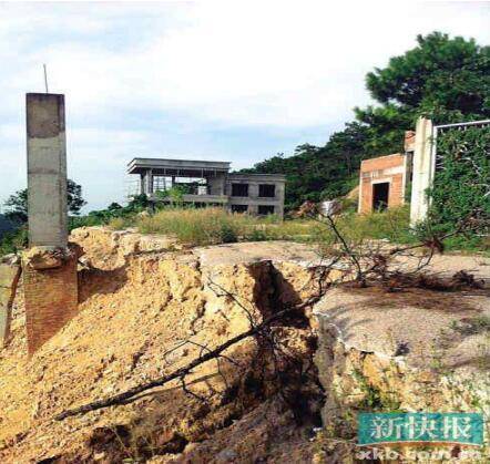 新快报报道的《东莞观音山森林公园现22栋私人别墅》:部分别墅门前泥土已流失