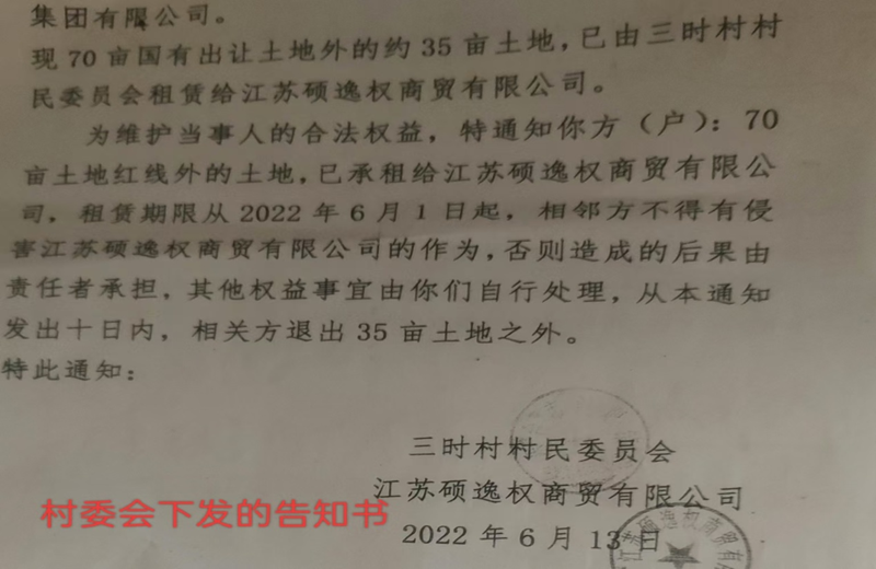 2023年春天,许友华组织一伙人,将企业除主体厂房也就是70亩地之外的地方,自已圈了起来,并堵死了原有企业的大门,意思这些地就是村上的了,然后以247万的价格,一次性出租给了另一家企业。