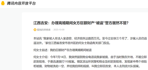 相关链接:女子称遭入室盗窃损失数百万元,涉案者仍逍遥法外