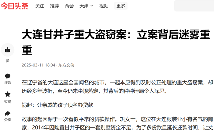 在辽宁省的大连这座全国闻名的城市,一起本应得到及时公正处理的重大盗窃案,却历经多年波折,至今仍未尘埃落定,其背后的种种迷局令人深思。 祸起:让亲戚的孩子顶名办贷款 故事的起因源于一次看似平常的贷款操作。巩女士,这位在大连服装业小有名气的商家...