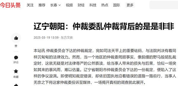 本站讯 仲裁委员会下达的仲裁裁定,宛如司法天平上的重要砝码,与法院判决有着同样沉甸甸的法律效力。然而,当一个地区的仲裁委罔顾事实,像脱缰的野马般胡乱裁定时,这就无疑是对法律尊严的公然亵渎,给当事人带来的损失与后果,恰似一场突如其来的暴风雨,难以估量。辽宁省朝阳市仲裁委员会下达的一份裁定,便陷入了这样的争议漩涡。即便明知裁定错误,却依旧固执地沿着错误的道路一路前行,当事人无奈之下将这家仲裁委投诉至媒体,一场揭开真相的调查就此展开。