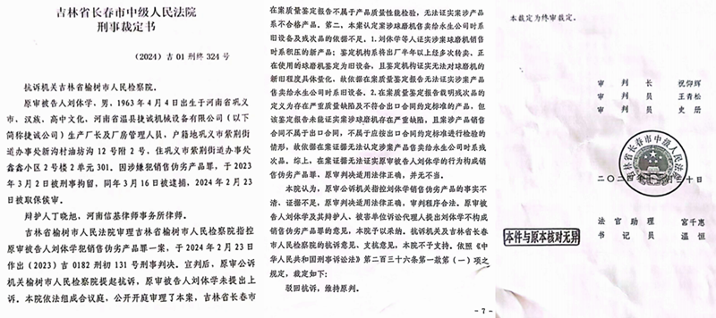 2021年9月,榆树市公安局以涉嫌合同诈骗罪立案侦查,法院随后驳回了捷诚公司提起的民事诉讼,案件自此进入刑事程序,捷诚公司实际控制人刘其范(已死亡)及生产厂长刘体学被指控销售伪劣产品罪。2024年,榆树市法院一审判决刘体学无罪,然而榆树市检察院却提起抗诉,好在长春市中级法院最终驳回抗诉,维持原判。