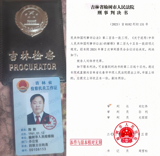 2.强行公诉,恶意抗诉,浪费司法资源:法院开庭前,合议庭和审判委员会曾建议检察院撤诉,可检察长曹政等人却滥用职权,执意给被告扣上莫须有的罪名,对原告陈跃进行打击报复。陈跃此前向上级检察院和政法委实名举报办案人员徇私枉法,非但没有得到公正处理,反而引发检察院一系列不合理举措,包括扣押被告资产等。在此案中,榆树市法院和长春中级法院先后开庭4次,陈跃在法庭上凭借无罪证据有力驳斥了榆树检察院的起诉和长春市检察院的抗诉。直至2024年12月30日,长春中院作出终审裁定,被告终获无罪判决。
