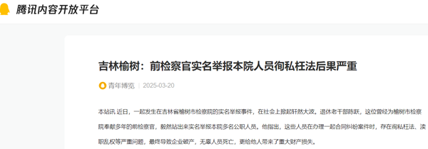 本站讯 近日,一起发生在吉林省榆树市检察院的实名举报事件,在社会上掀起轩然大波。退休老干部陈跃,这位曾经为榆树市检察院奉献多年的前检察官,毅然站出来实名举报本院多名公职人员。他指出,这些人员在办理一起合同纠纷案件时,存在徇私枉法、渎职乱权等严重问题,最终导致企业破产,无辜人员死亡,更给他人带来了重大财产损失。
