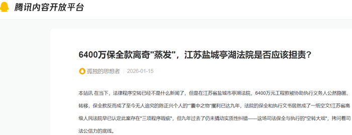 江苏盐城亭湖法院6400万保全款“蒸发”之谜