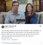【环球网报道 实习记者 侯佳欣】据美国有线电视新闻网(CNN)报道,3月14日,今天新闻,得克萨斯州民主党众议员贝托奥罗克(Beto ORourke)在推特上宣布,他将参加美国2020年大...