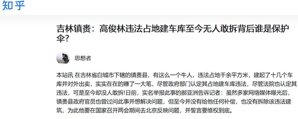 相关新闻:吉林镇赉牛人高俊林违法占地建车库出卖至今无人敢拆?
