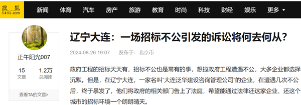 政府工程的招标天天有,招标不公也是常有的事,想揽政府工程遭遇不公,大多企业都选择沉默。但是,在辽宁大连,一家名叫大连泛华建设咨询管理公司的企业,在遭遇几次不公后,终于暴发了,他们将政府的相关部门告上了法庭,希望能通过法律还这家企业、还这个...