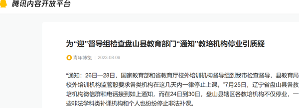 通知:26日28日,国家教育部和省教育厅校外培训机构督导组到我市检查督导,县教育局校外培训机构监管股要求各类机构在这几天内一律停止上课。7月25日,辽宁省盘山县各教培机构微信群和电话接到如上通知,而在24日到30日,盘山县辖区各教培机构不仅停业,一些...