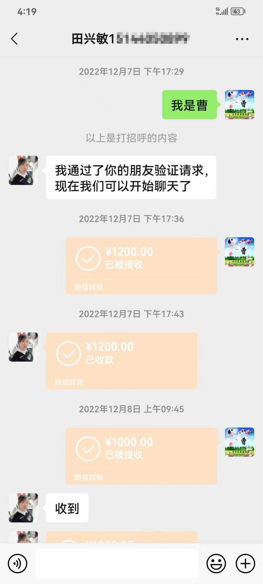田兴敏收取案件代理费截图。资料图片