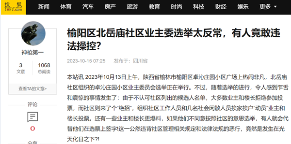 记者了解到,因为多数业主和楼长存在以上这些忧虑,他们曾经于10月12日集体前往榆阳区政府反映问题,但是连大门都没能进去,于是他们在这次选举中选择了坚决的抵制,参与投票的人寥寥无几。