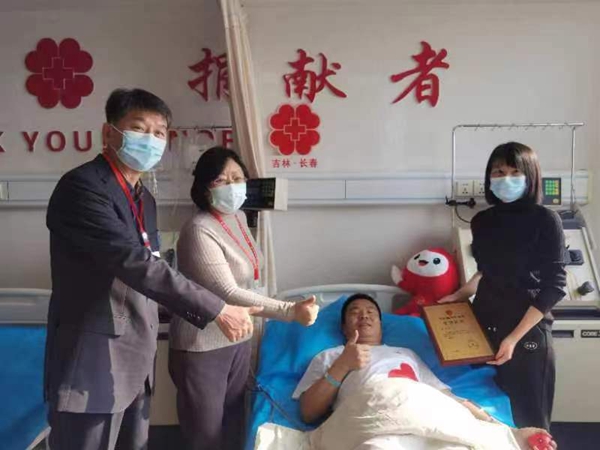 11月10日,徐明在吉林分库和德惠市红十字会工作人员的陪同下来到了长春市吉大一院办理住院手续,15日进行了造血干细胞采集。采集当天,中华骨髓库吉林分库主任刘艳丽来到采集现场慰问徐明,并为他颁发了荣誉证书,感谢他挽救患者生命的爱心善举。