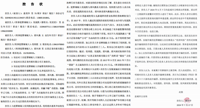 潘其华说:发现被骗后,他曾于2024年6月7日向盐城市文峰派出所报案,派出所一王姓副所长接警并对潘其华进行了询问,此后,便再也没有任何信息。他多次让委托人与王副所长联系询问案件审查进展,而派出所一律不接听电话。再后,他又委托人多次拨打派出所办公电话询问,得到的答复就让等,直至今日仍无音信,也没立案。