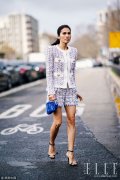 流苏元素 可不只是民族风的标配。针织软呢套装的衣襟下摆早就开始用流苏装饰,有些会很大很密,增添了一丝俏皮的味道。大表姐刘雯露腹上衣配短裙,清爽女子力十足。再搭配银质的大耳环,更有一股异域风情。 彩色让春...