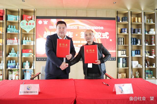 ▲丽水市侨益公益基金会与益启爱社区服务中心战略合作签约仪式