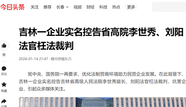党中央、国务院一再要求,优化法制营商环境助力民营企业发展。在此背景下,吉林一企业实名控告吉林省高级人民法院李世秀庭长、刘阳法官枉法裁判,坑害企业,引起众多媒体关注。
