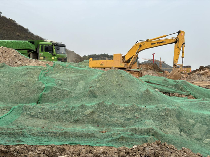 2024年4月1日上午,我们在沈家坞路(龙角路)现场发现有矿石堆场,并有运输矿石的重型卡车出入。