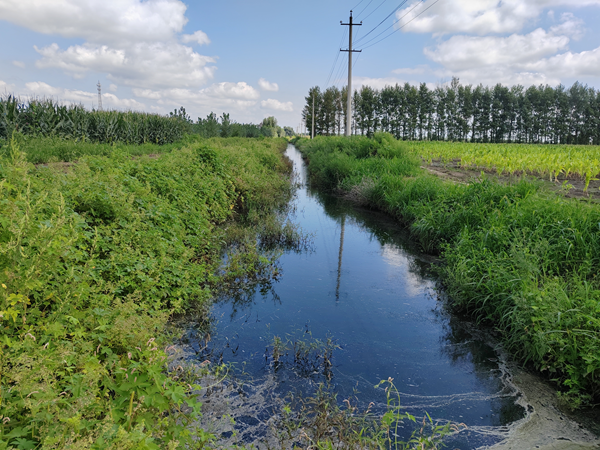 图为:吉牛牧业场区南北走向污水沟,约有1公里。