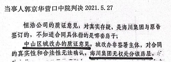 在大连市中院,针对同一事实能出现两种认定结果这样的事,早已不是什么怪事了。而紧随其后更加令人瞠目结舌的是,在今年6月26日各大媒体报道该事件后,城改办在向上级政府说明情况的报告中,又报告说那9000余平方米的公建又不是自己的了,已经作为工程款抵顶给海川集团了,营口中院正在执行抵顶公建程序。那么,面对城改办的这一做法,法院的法官们怎么想怎么看?也许一点也不会在意。