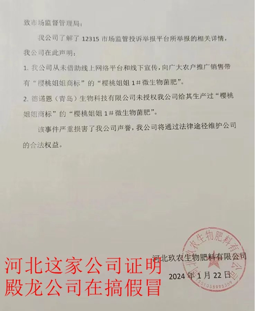 2,申请人所转载的文章证据确凿、真实,文章只是陈述争议事实,并没有诋毁、诬陷语言,也没有使用侮辱性言辞等贬损他人名誉、人格,根据《中华人民共和国民法典》第1025条规定(即【名誉权的限制】:行为人为公共利益实施新闻报道、舆论监督等行为,影响他人名誉的,不承担民事责任,但是有下列情形之一的除外:(一)捏造、歪曲事实;(二)对他人提供的严重失实内容未尽到合理核实义务;(三)使用侮辱性言辞等贬损他人名誉),申请人转发文章不构成名誉侵权。2022年12月初,申请人在自己管理的网站上转载关于樱桃树事件的报道后,大连殿龙曾经通过QQ和邮箱给申请人管理的网站发函,要求删帖,却未能提供有力的证据证明稿件存在不实信息。之后,申请人立即与农户一方取得联系。农户们在此前提供证据的基础上,又提供了大量证据,其中有针对樱桃姐姐6#全能型涂干营养液的《分析报告》,鞍山绿洲林木果业技术鉴定有限公司出具的《技术鉴定意见书》(以下简称《技术鉴定意见书》)和瓦房店市农业农村局出具的《信访事项处理意见书》等。这些权威机构均证明,大连殿龙的植保方案和农资确有问题。其中,在〔2022〕00007号《答复意见书》中,瓦房店市农业农村局称:“经农业综合执法队调查,根据所提供的农药产品包装及肥料产品包装,通过中国农药信息网、中国种植业信息网及执法软件查询逐一比对核实,发现其中确有问题,执法队已经对大连殿龙农资销售有限公司进行调查核实,下一步将针对调查核实中出现的违法行为进行立案处理。”《技术鉴定意见书》是迄今为止最具权威性的鉴定,该鉴定书称:“纪小卫等栽植的樱桃树,栽培管理正常。樱桃树受害排除冻害、涝害、肥害、除草剂药害、杀虫杀螨剂药害、拉枝伤害、根系侵染性病害及土壤因素所致”;“受害樱桃树呈现出典型的铜离子药害症状,施用33%喹啉铜悬浮剂和23%松脂酸铜乳油是樱桃树受害的直接原因”;“所施用的33.5%喹啉铜悬浮剂和23%松脂酸铜乳油,均未在樱桃树上获得登记,属擅自扩大使用范围。”需要特别强调的是,虽然大连市农业农村局声称组织了一些所谓的专家进行过研判,研判的结论是:导致樱桃树枝条、根系、树干树皮受害症状的主要原因是由真菌病害引起。但是这个所谓的研判结论没有任何专家签名,更没有任何机构盖章,仅仅是一张废纸而已,并不是权威机构的鉴定结论。申请人转发稿子时间是在2022年12月初,大连殿龙联系申请人删帖时并未提供证据证明文章存在不实信息问题。时隔一年后,根据新闻的时效性,即使是大连殿龙找专家搞出的结论是正确的,那也是在一年后的结论,并不影响一年前申请人在当时所转发新闻的真实性。
