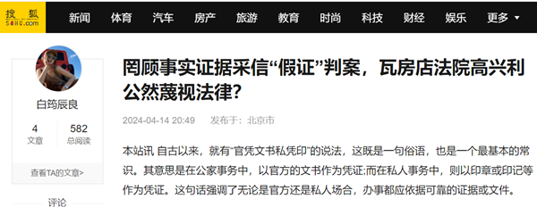 3,瓦房店法院(2023)辽0281民初261号民事判决书认定事实错误,据以判决的所谓证据涉嫌伪证、假证。该判决书对文章所依据的主要证据,如:对樱桃姐姐6#全能型涂干营养液的《分析报告》、《技术鉴定意见书》和《信访事项处理意见书》等有效证据连提都不提,罔顾事实和权威机构出具的大量证据,却采信一个没有任何机构盖章、也没有任何人签字的所谓研判意见(全称《关于瓦房店市樱桃树死亡原因专家综合研判意见》)作为定案依据,是严重的枉法判决,法官故意采用涉嫌假证、伪证判案,已经涉嫌刑事犯罪。即使这个所谓的《研判意见》能够作为定案的证据使用,也不能作为申请人转发稿子构成名誉侵权的证据,因为如上所述,申诉人转发的稿子发表于2022年12月6日前后,而这个所谓的《研判意见》出笼于2023年5月22日,而根据法律规定和新闻的时效性,不能以后来出现的证据否定以前所发表新闻的真实性。