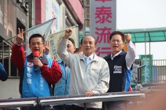 台当局前立法院长王金平(中)今日率王金平之友会民众到国民党新北市三重立委补选候选人郑世维竞选总部,为郑世维造势。王金平之友会新北总会总会长、前立委卢嘉辰(右)也出席。(图片来源:台湾《联合报》) 中国台湾网3...